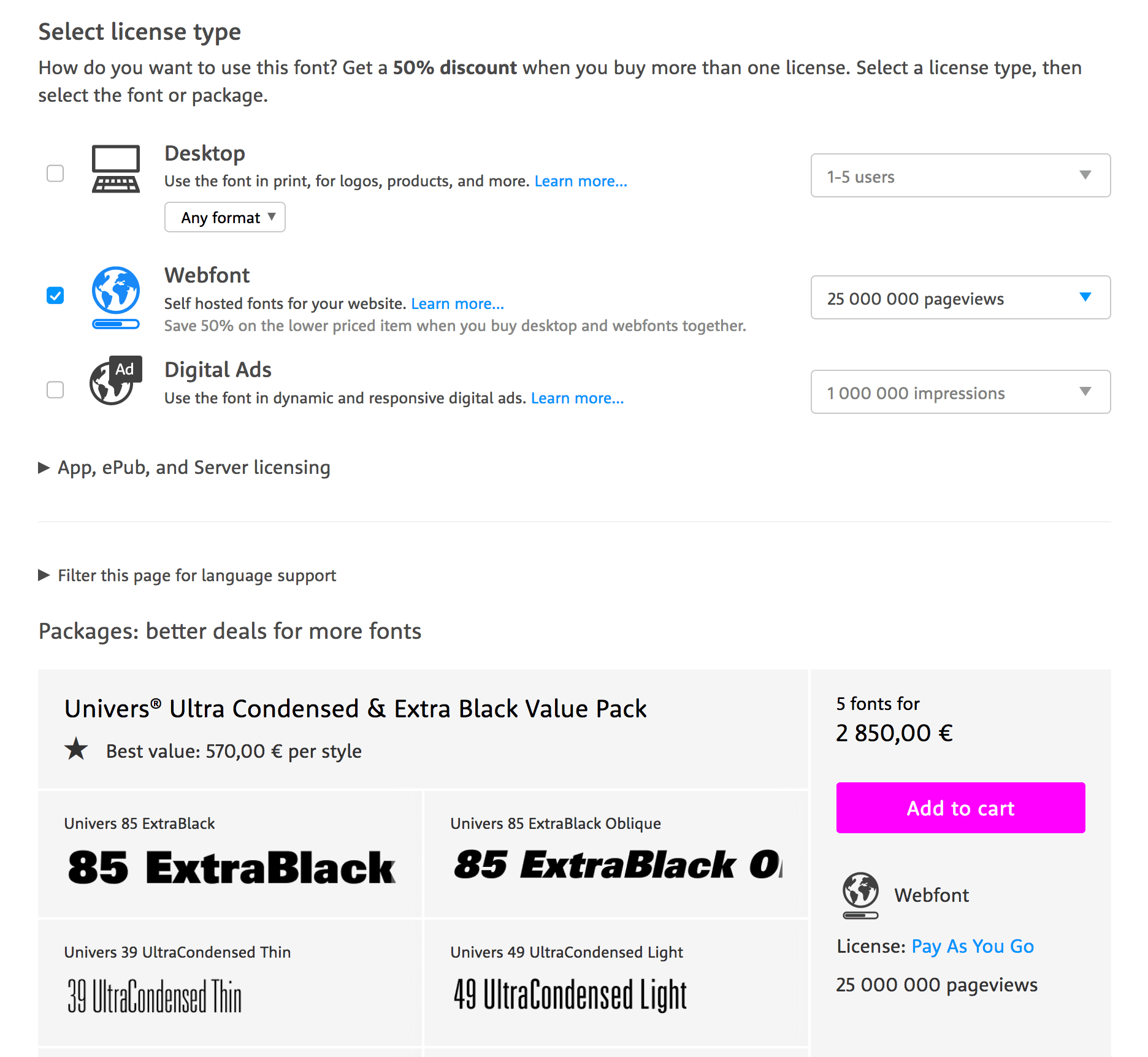Certaines fonderies proposent un prix web à anticiper (dix fois le prix de la licence print pour une machine).